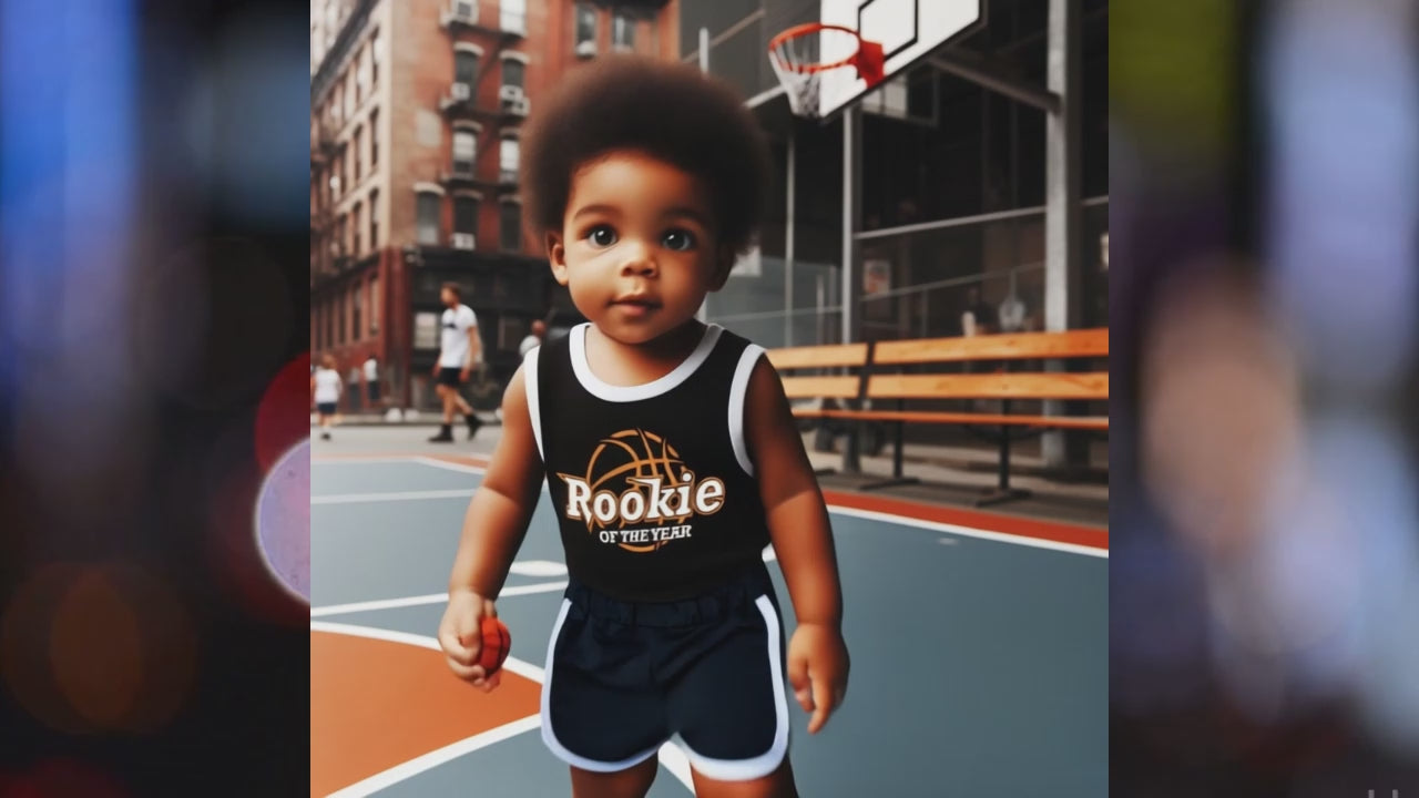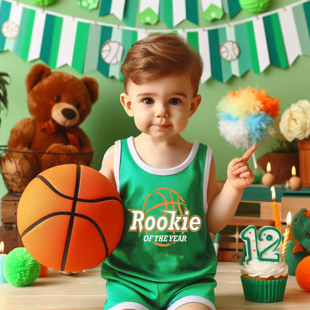 ππ A Tribute to Your MVP: This charming jersey and shorts set pays homage to your little rookie's first year with a vibrant "Rookie of the Year" design, complete with basketball graphics and celebratory flair. It's a winning combination of style and sentimentality that will melt hearts and make memories.