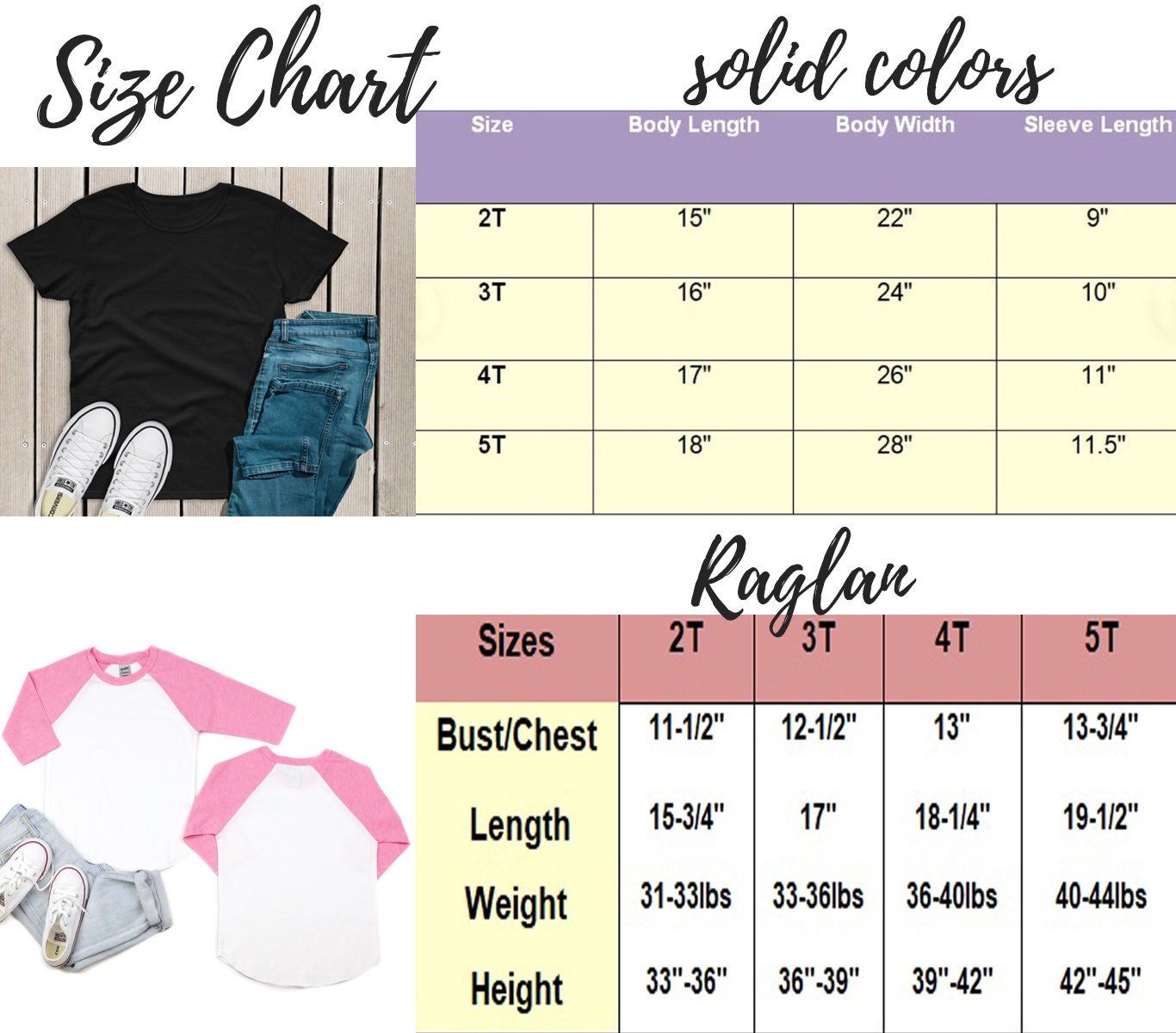 Please note that by default, the black color t-shirts will have white vinyl and the other color t-shirts will have black vinyl. Raglan are 3/4 sleeves.
